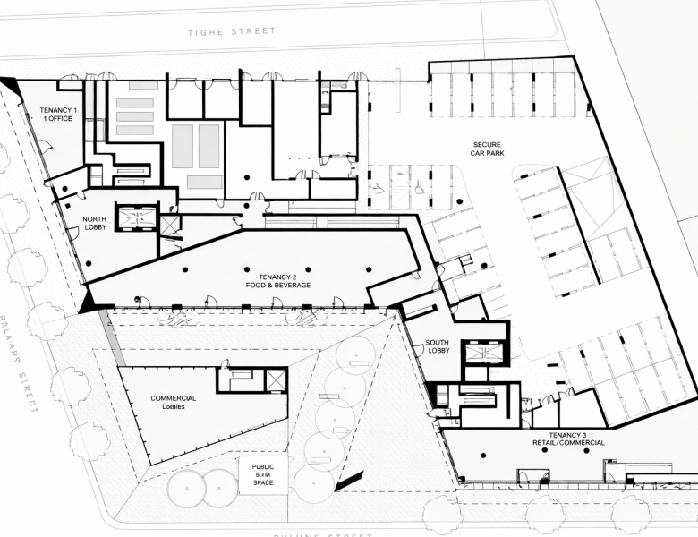Ground-level commercial precinct offering cafés, restaurants and boutique retail stores.