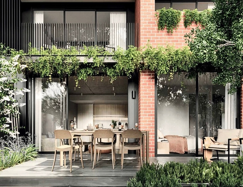 Each 2 and 3 bedroom apartment is crafted with premium finishes by Krisp Interiors, showcasing oak timber floors, concrete ceilings, stone vanities, and terrazzo-look tiling. Thoughtful details such as solar power, induction cooktops, and double glazing reflect a commitment to sustainability, while private balconies and landscaped courtyards provide serene spaces to relax and entertain.