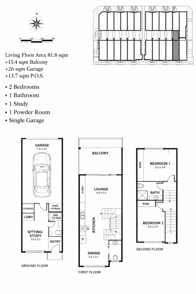 Includes study spaces, ensuites, balconies, separate laundries, and secure garage/carport options.