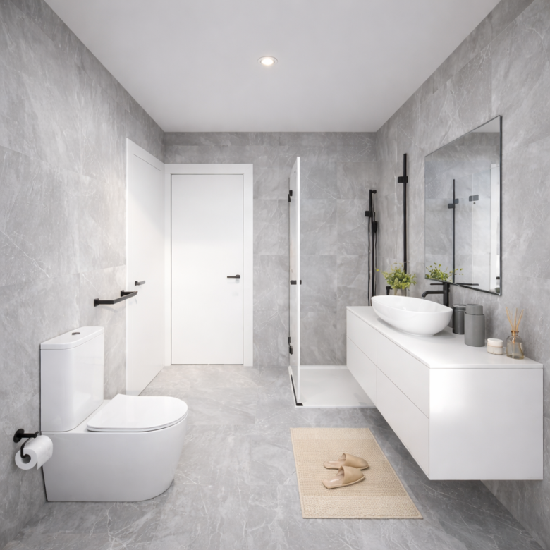 - Contemporary bathroom fittings and finishes