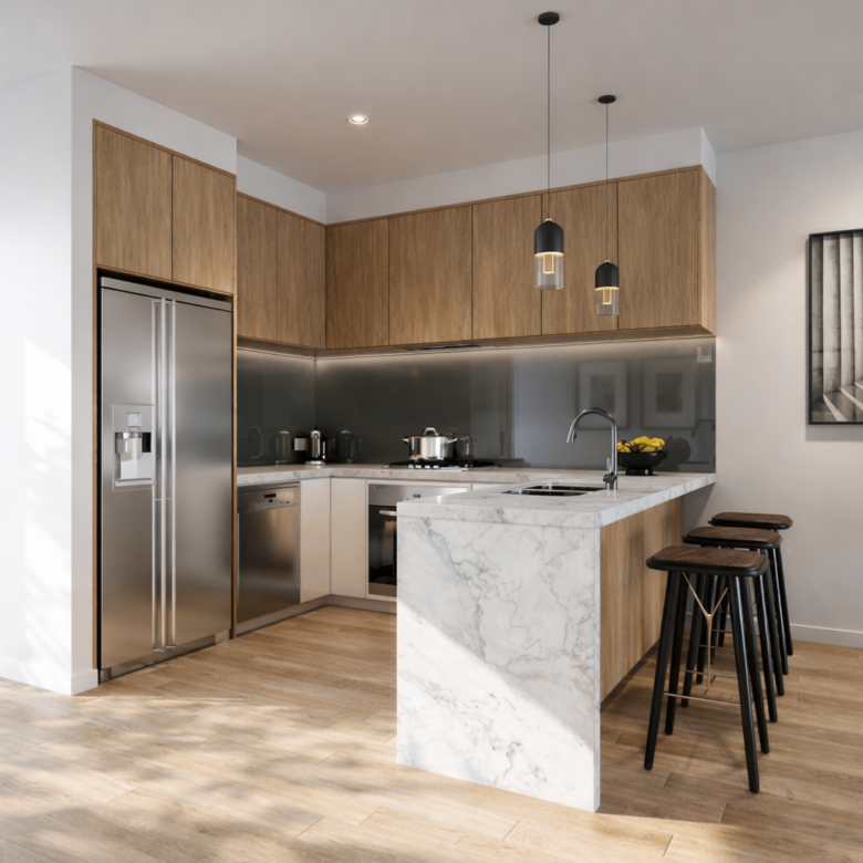 - Modern kitchens with stone benchtops