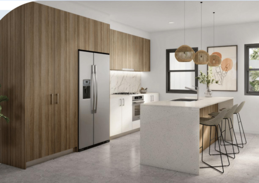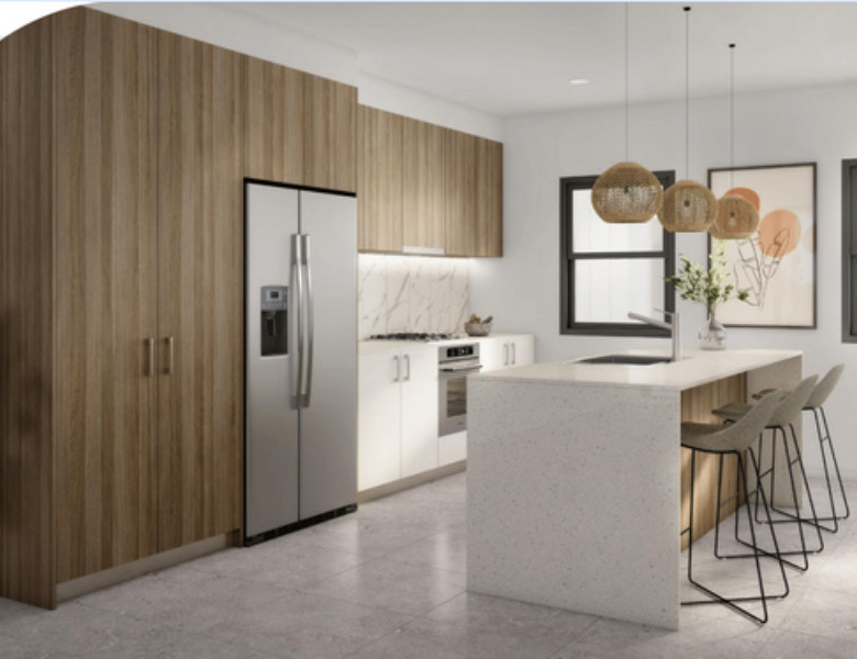 Interiors feature a contemporary palette of stone and timber, with high-quality finishes for elegance, usability and seamless liveability.