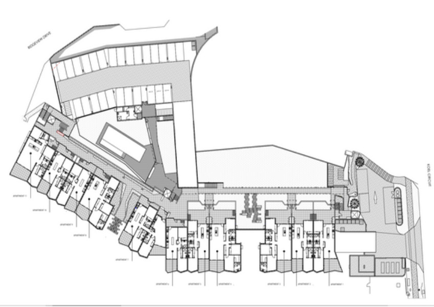 Modern apartment configurations with clearly structured internal, external, entry court and carpark areas.