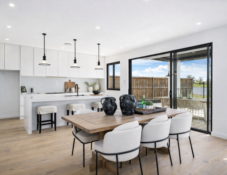 Open-plan living and dining areas filled with natural light.