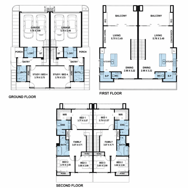 - Double garage for each residence