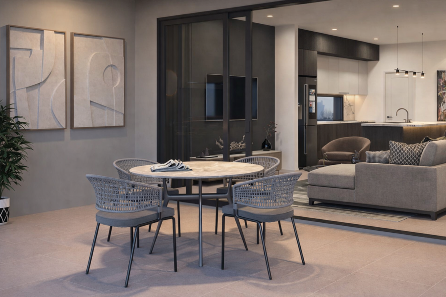 - Open-plan living and dining layouts